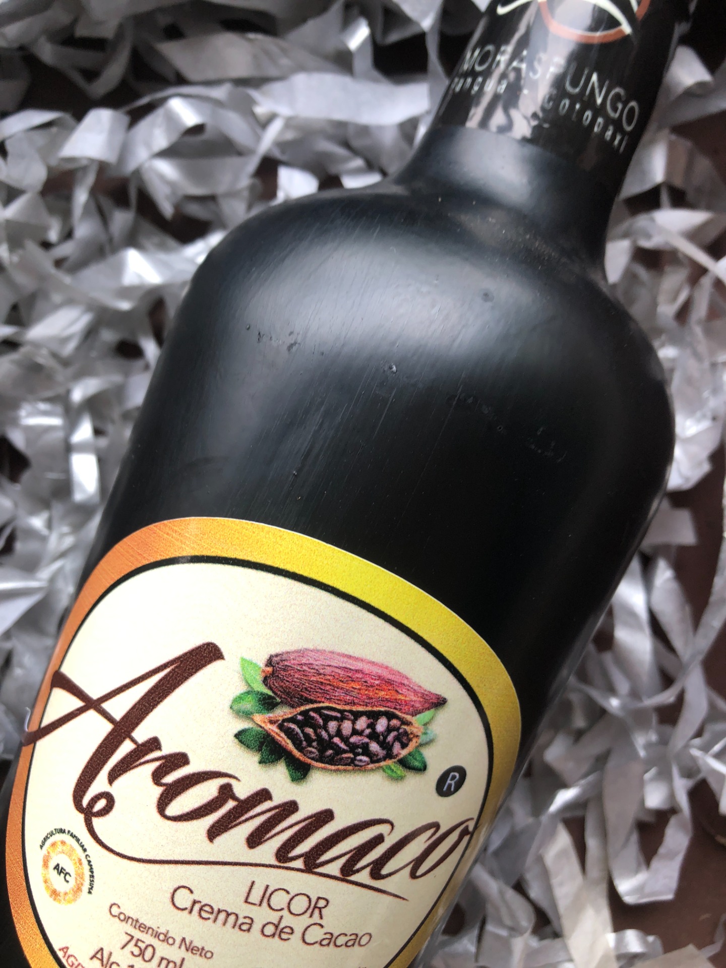 Lista de ingredientes: Aguardiente de caña, Leche, Azucar, Pasta de cacao fino de aroma, Espesante: goma xanthan (415)